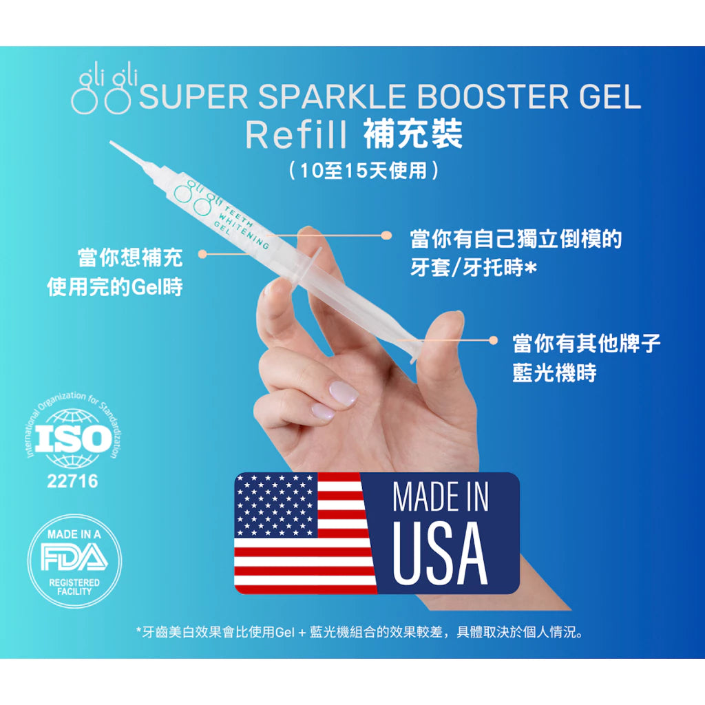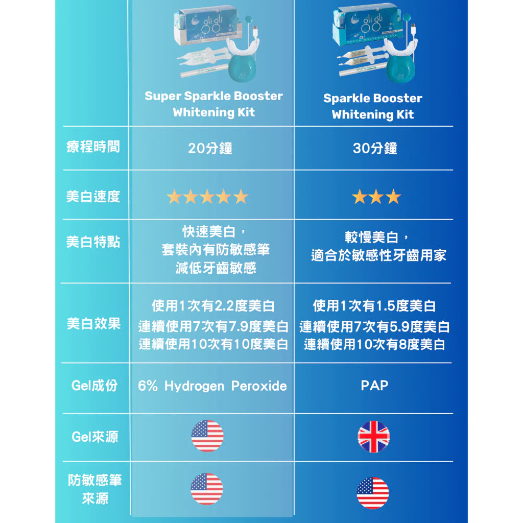 - 比 SPARKLE BOOSTER gel 具有更快和更強的牙齒美白效果